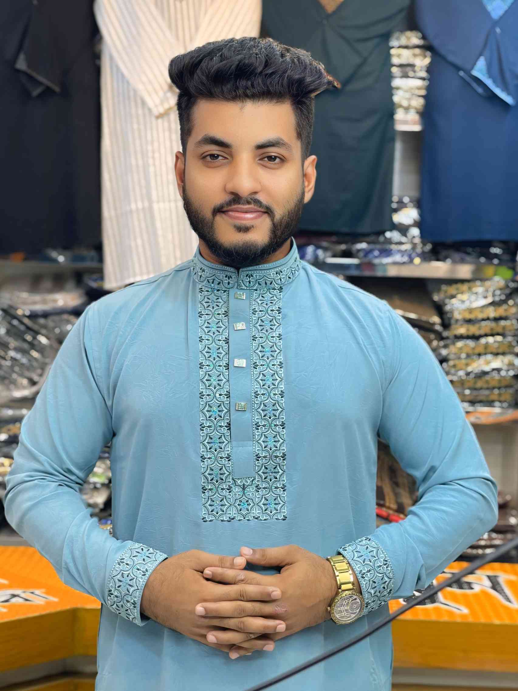 লাক্সারি কফ হাতা পাঞ্জাবি – স্কাই ব্লু কালার