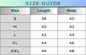 38-S, 40-M, 42-L, 44-XL, 46-2XL